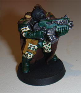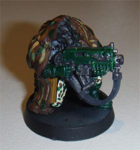 Drilled the bolters and boltgun metal drybrush to the guns in preparation for the Dark Angels Green paint. Also tested the Camo Cloak camouflage pattern.