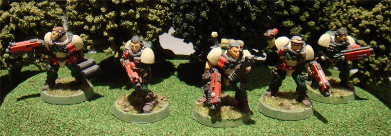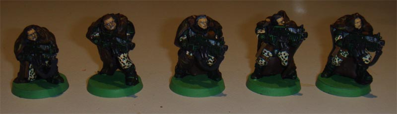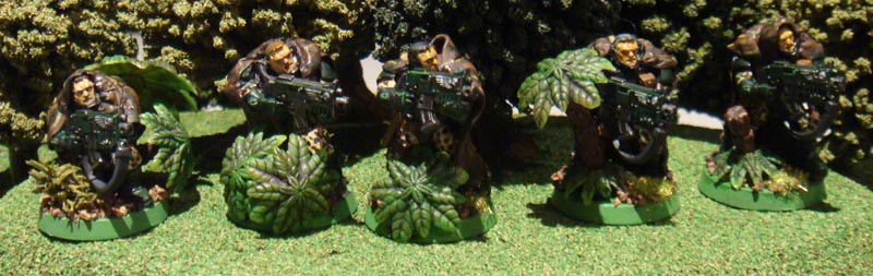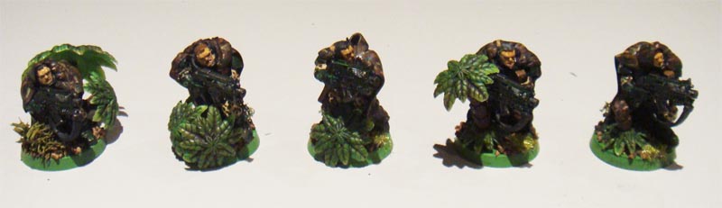 below are my rpoud scouts displayed amongst some foliage and a five man squad from my old Shadow Guards army in the same display setting to demonstrate the difference in posture, painting and sculpting I have achieved with nearly 10 years between the two sets!!